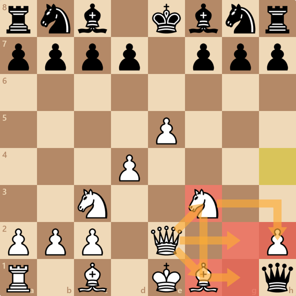Surprisingly, undeveloping the knight to g8 is in fact the best move for Black. Occasionally, Black will make an immediate mistake under this pressure and move the knight to one of your protected squares and immediately hang their knight. Most commonly, they’ll miss the fact that the light square diagonal is covered by the White queen. If this happens, capture their knight, and continue the game with a massive advantage.