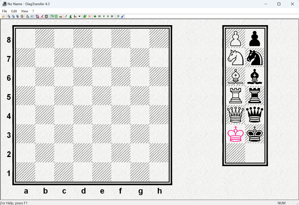 After a bit of reading and research, I identified the solution: using special chess fonts to create the board diagrams in a word processor like Microsoft Word. The chess fonts were easy to find (and were free), but I needed a way to automate making the diagram. It seemed that among its many functions, ChessBase can do it, but I was loathe to spend hundreds of euros for this single use case! There were some very old Office 97 era macros that could process an inputted FEN into a diagram, but these don’t really work with modern Word in 2024.