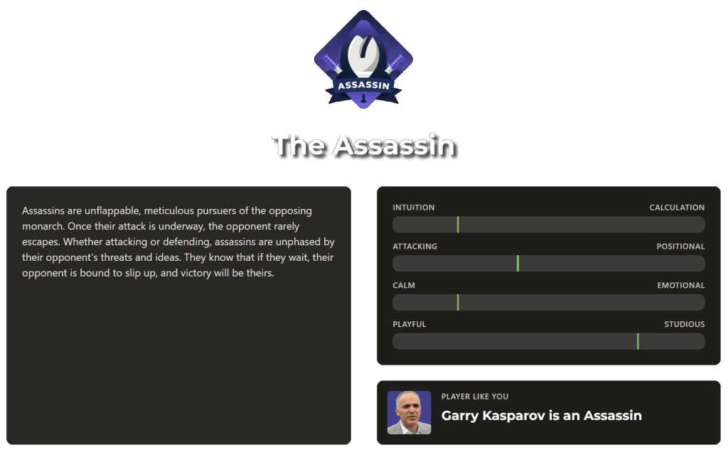 […] If you haven’t tried out the chess.com Chess Personality Test, give it a go as a bit of fun! I’m apparently a Chess Assassin! […]
