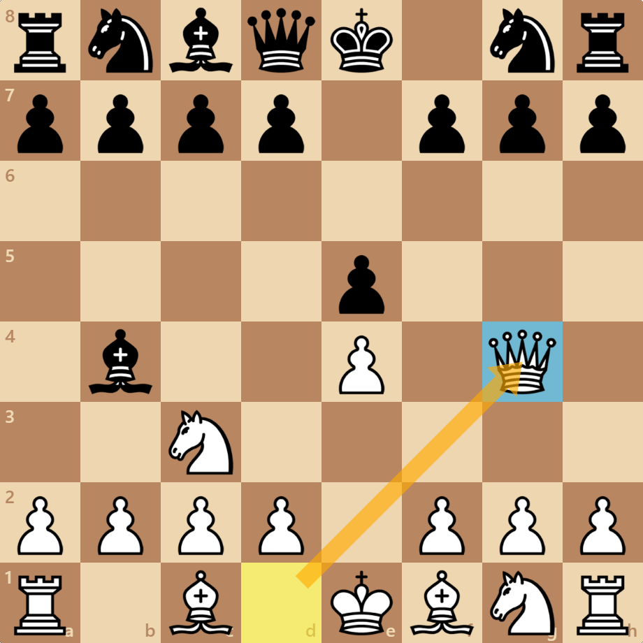 Given the visual similarity to the Giraffe Attack, I call this the Anti-Zhuravlev Giraffe Counterattack. The fascinating thing about this Giraffe-ish attack is its propensity to induce a blunder from Black, even at the intermediate level! The obvious threat from the giraffe queen is the attack on Blackβs g7 pawn. In both of my consecutive games, Black responded to this threat with the sensible looking (3β¦ Qf6), developing the queen and defending the g-pawn. This response by Black is the second most played move (26%), which is only slightly less frequent (29%) than Black committing to an exchange (3β¦ Bxc3). However, the move is a blunder, and White wins from the position 80% to Black 18%! Yes, in the position White has over four times the odds of winning compared to Black, and itβs only at the end of turn 3! Wow! π€©
