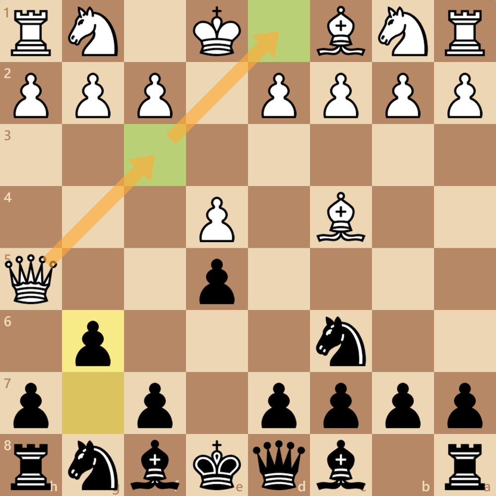 After 1. e4 e5 2. Qh5 Nc6 3. Bc4 g6 White can continue the attack with Qf3 or abort with Qd1.