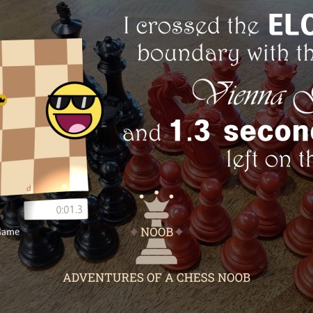 I cross the ELO 1300 boundary with the Vienna Game and 1.3 seconds left on the clock!